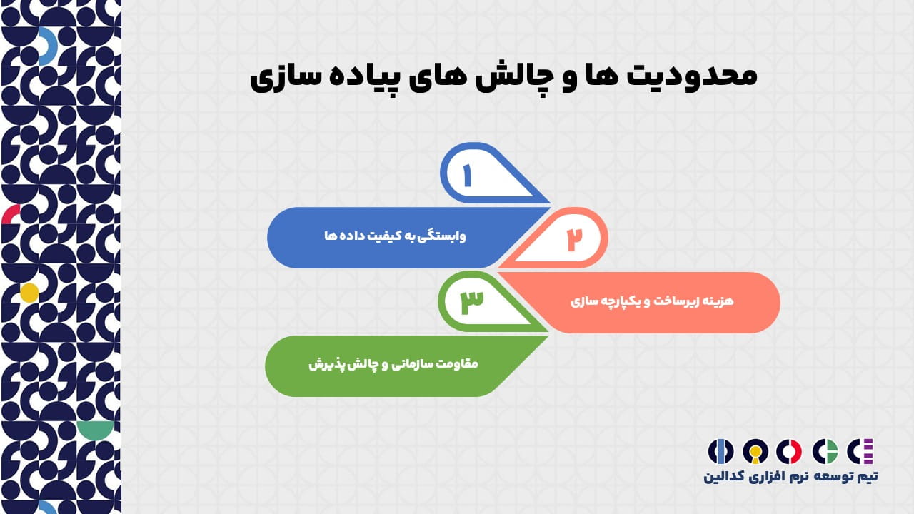 با وجود مزایای گسترده هوش مصنوعی در مدیریت پروژه، اجرای عملی آن با موانع فنی، سازمانی و فرهنگی همراه است. موفقیت در این مسیر صرفاً به خرید یک ابزار هوشمند وابسته نیست، بلکه نیازمند آماده سازی زیرساخت داده، بازطراحی فرآیندها و ایجاد پذیرش در سطح سازمان است. درک این چالش ها پیش از اجرا می تواند احتمال شکست پروژه های تحول دیجیتال را کاهش دهد.