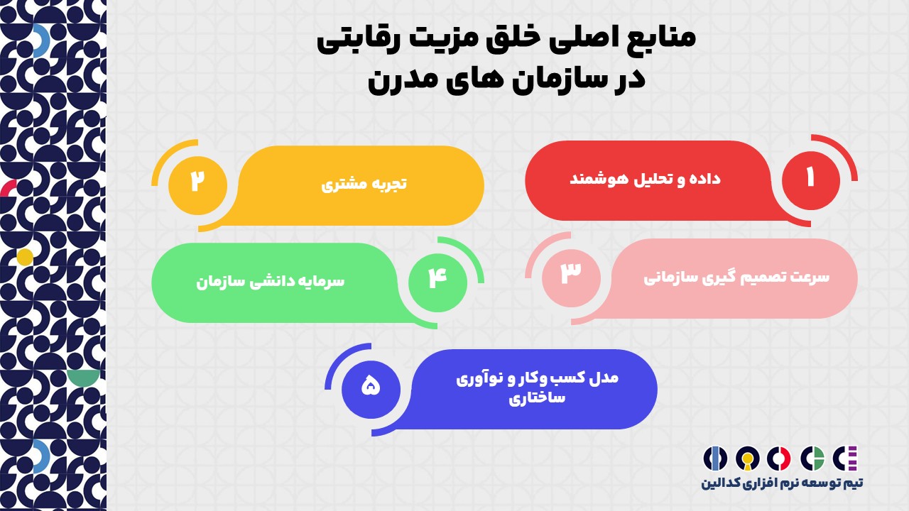 آینده مزیت رقابتی در اقتصاد دیجیتال به صورت بنیادین با گذشته متفاوت است. دیگر منابع فیزیکی، سرمایه مالی یا مقیاس تولید به تنهایی مزیت پایدار ایجاد نمی کنند. مزیت رقابتی به سمت هوشمندسازی، داده محوری، شخصی سازی و یادگیری سازمانی پیوسته حرکت کرده است؛ جایی که توان تحلیل، فهم، تطبیق و معنا سازی سازمان ها تعیین کننده جایگاه آن ها در بازار می شود. در این پارادایم جدید، سازمان هایی که سریع تر یاد می گیرند، سریع تر تطبیق پیدا می کنند و سریع تر ارزش خلق می کنند، برنده رقابت خواهند بود. مزیت رقابتی آینده نه از دارایی های سخت، بلکه از قابلیت های شناختی سازمان شکل می گیرد.