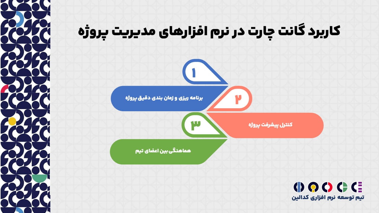 گانت چارت علاوه بر نمایش زمان بندی، در نسخه های پیشرفته تر امکان نمایش وابستگی بین فعالیت ها، نقاط عطف (Milestones) و درصد پیشرفت هر کار را نیز فراهم می کند. به همین دلیل، این ابزار به یکی از اجزای جدایی ناپذیر نرم افزارهای مدیریت پروژه تبدیل شده است.