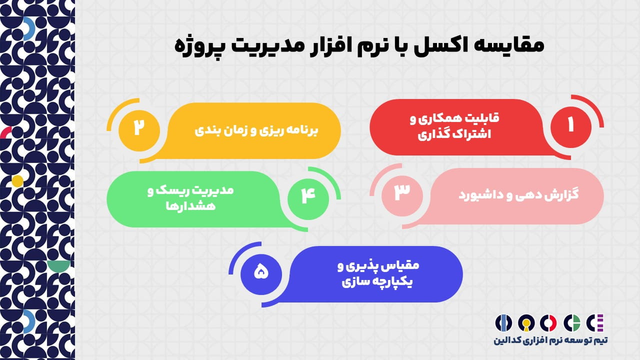 برای تصمیم گیری صحیح در انتخاب ابزار مدیریت پروژه، ضروری است که نقاط قوت و ضعف اکسل و نرم افزارهای تخصصی مدیریت پروژه به صورت مستقیم مقایسه شوند. هرچند اکسل یک ابزار همه کاره و کاربردی است، اما محدودیت های آن در مدیریت پروژه های پیچیده و تیمی باعث شده است نرم افزارهای مدیریت پروژه جایگزینی مؤثر باشند که فرآیندها را به شکل یکپارچه، دقیق و زمان واقعی مدیریت کنند.
