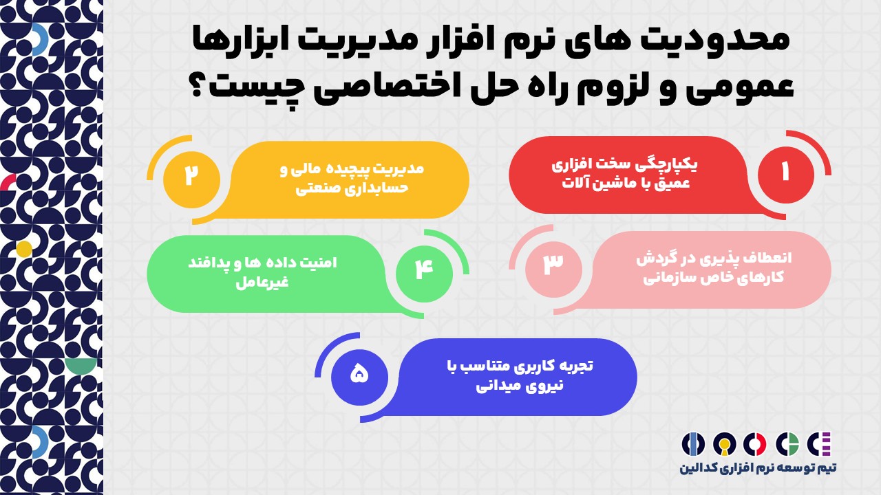 با این حال، مسیر موفقیت از انتخاب درست می گذرد. برای سازمان های کوچک، شاید ابزارهای عمومی کافی باشد؛ اما برای شرکت های بزرگ با پیچیدگی های عملیاتی، مالی و فنی، اتکا به راهکارهای عمومی مانند پوشیدن لباسی است که اندازه نیست. محدودیت در اتصال به ماشین آلات، ضعف در گزارش دهی مالی و عدم تطابق با فرآیندهای بومی، گلوگاه هایی هستند که بهره وری را محدود می کنند.